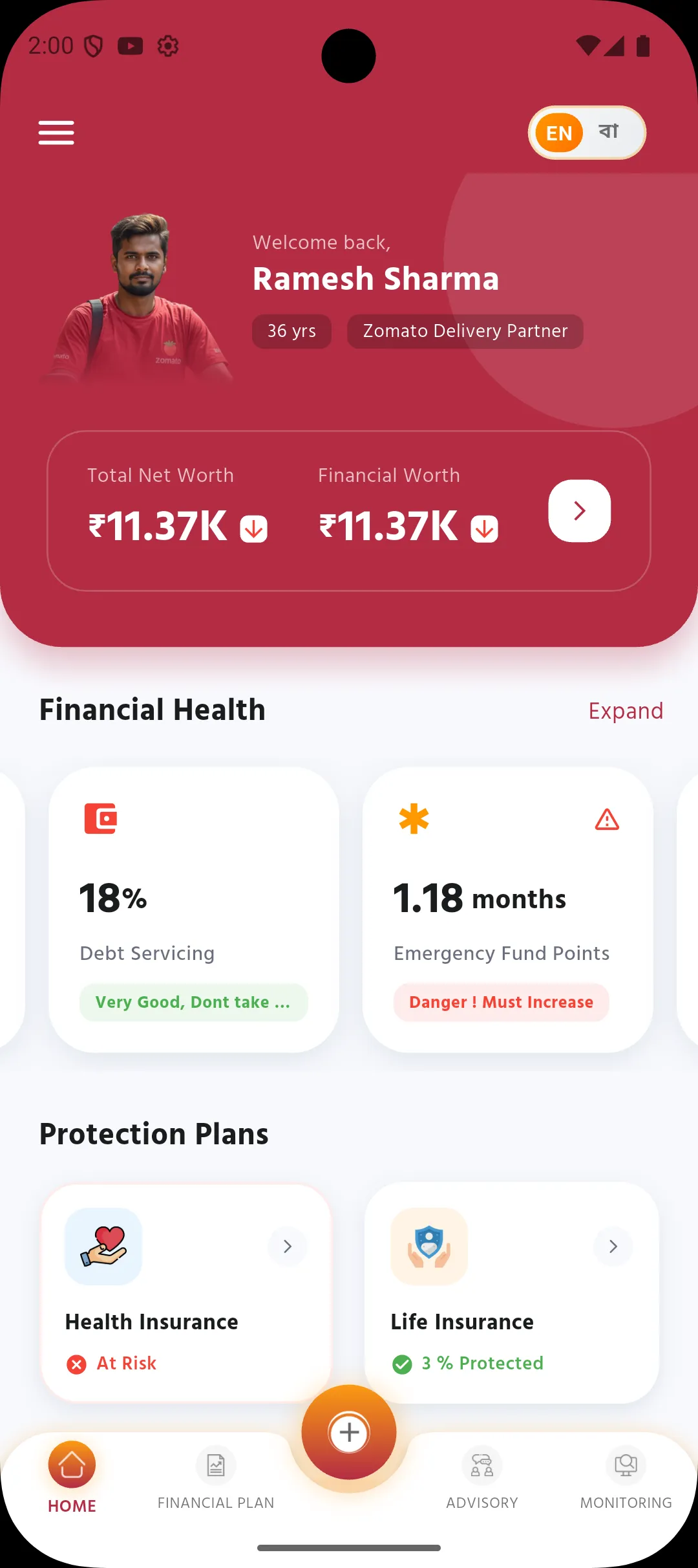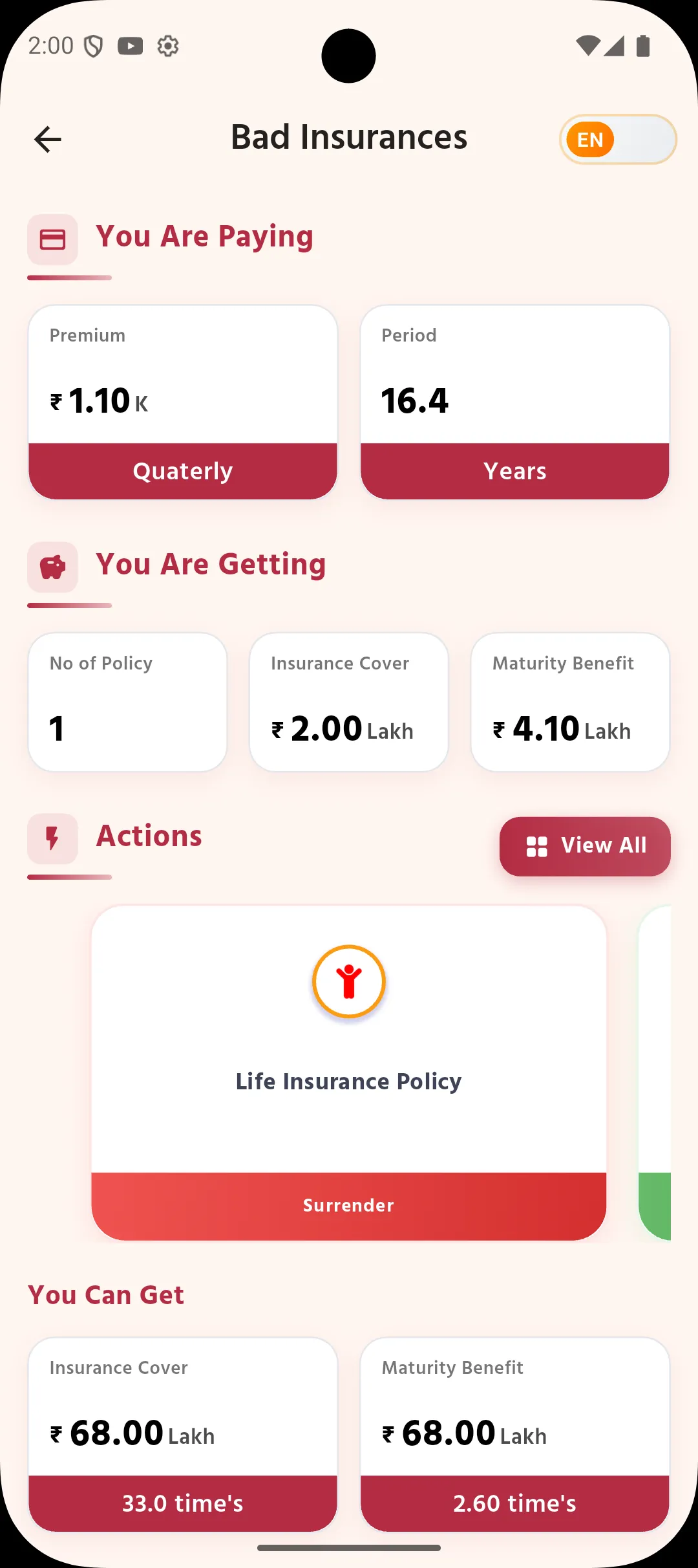 Our experts curate a pool of mutual funds and insurance products. Based on your financial plan and risk profile, the app recommends three suitable options for each product.