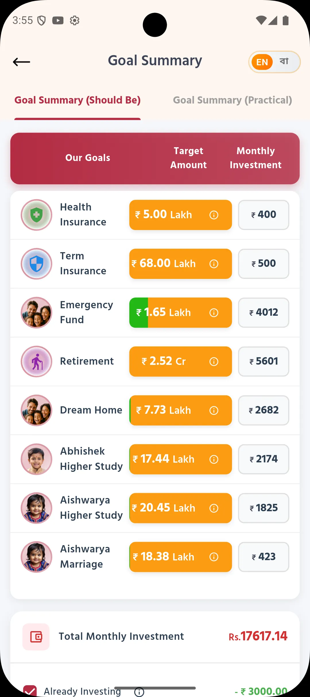 Using the information you provide, we analyze your financial status and create life goals. These goals are then converted into actionable financial goals and a practical financial plan.